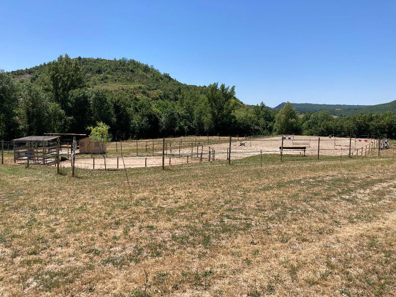 Les installations et les paddocks sont disposés sur un terrain de 1.5 Ha en bord de rivière, à l'entrée du village de Saint Paul des Fonts.
